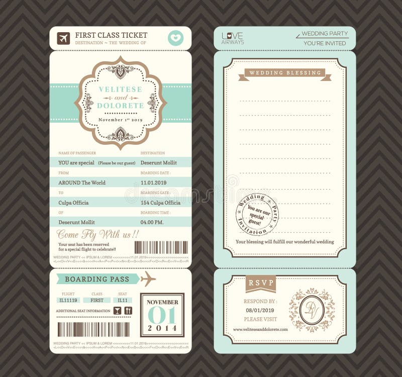 Boarding Pass Wedding Invitation Template Free Download. Download this Free Vector about Retro boarding pass ticket wedding invitation and discover more than 16 Million Professional Graphic Resources on Freepik. Easily customize the entire template using modern editing software such as MS Word Photoshop Illustrator Publisher and Pages.