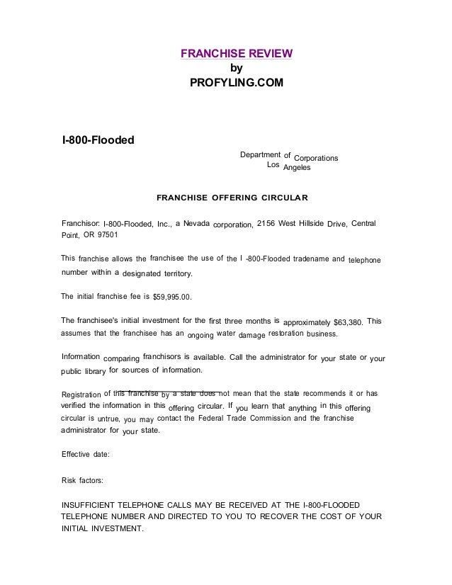 1800 Flooded Franchise Disclosure Document