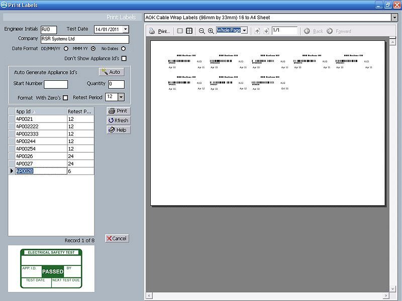 A label will be attached to appliances showing which have failed and which have passed PAT testing successfully. Our PAT Testing Labels for portable appliance testing are available with a Re-Test Date or without a Re-Test Date as specified in the new 4th Edition requirements. A Word label template allows you to insert informationimages into cells sized and formatted to corresponded with your sheets of labels so that when you print your labels the information and design is aligned correctly.