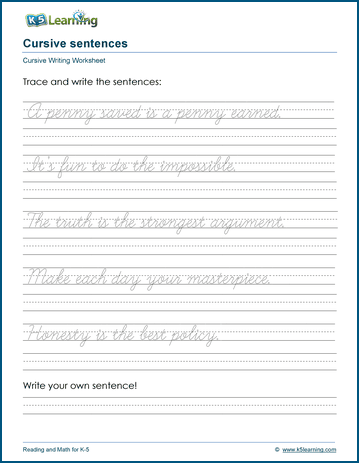 Writing Cursive Sentences Worksheets Free And Printable K5 Learning