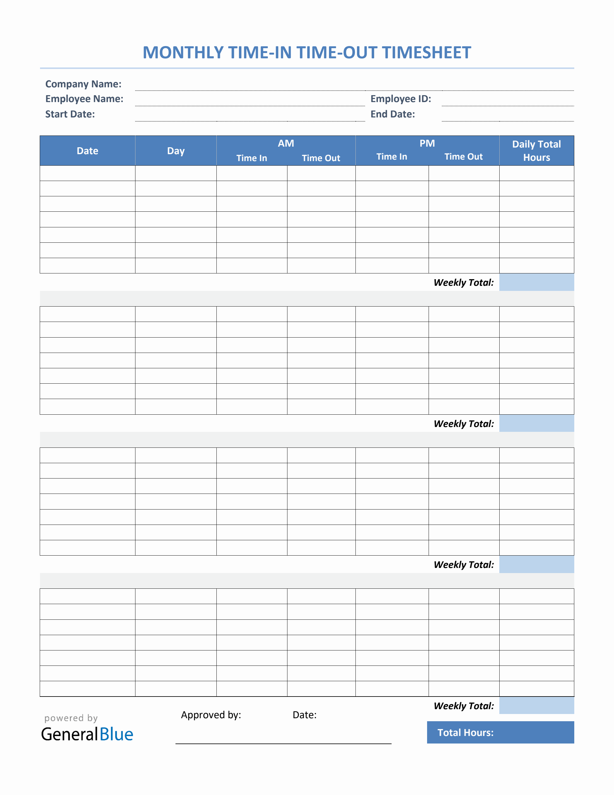 Free Printable Monthly Time Sheets Timesheet Template Time Sheet Printable Templates Printable Free