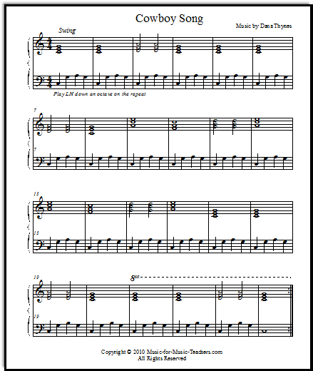 Free Beginner Sheet Music Cowboy Song For Piano Players