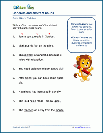 Using Concrete And Abstract Nouns Worksheet K5 Learning