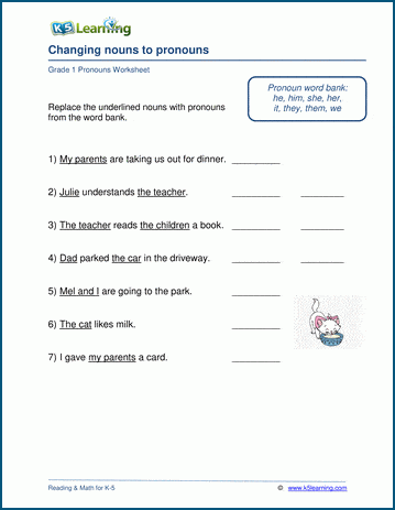 Nouns To Pronouns Worksheets K5 Learning