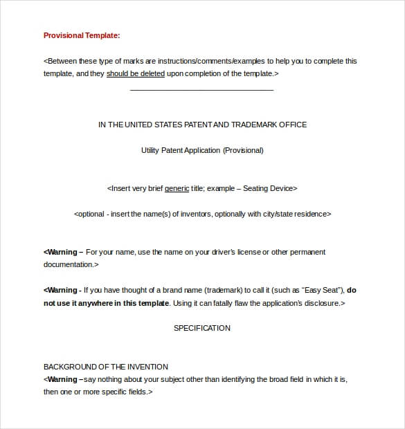 Provisional Patent Application Template Templates At Allbusinesstemplates Com